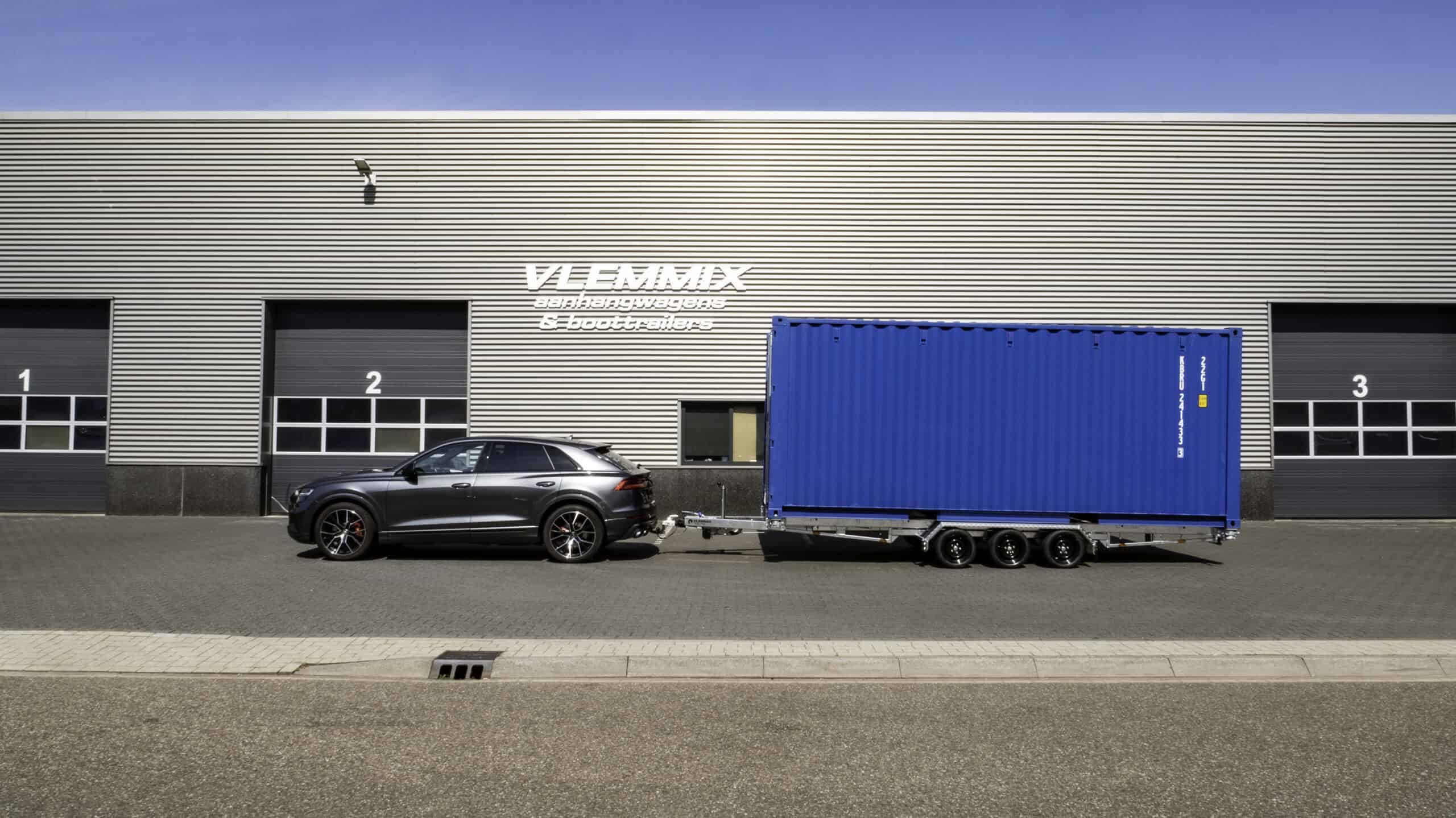 De Vlemmix Container Trailer 3×1800 kg 20FT is de krachtigste containertrailer in het assortiment van Vlemmix Trailers. Deze trailer is speciaal ontwikkeld voor het veilig vervoeren van zware 20FT containers, ook bij intensief dagelijks gebruik. Dankzij het versterkte chassis, drie krachtige Knott-assen en een laag zwaartepunt biedt deze trailer maximale stabiliteit, betrouwbaarheid én gebruiksgemak.